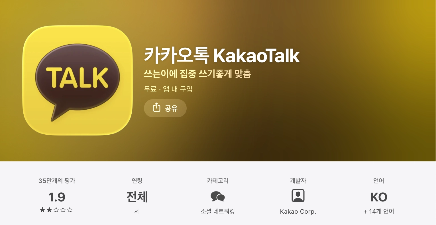 - 앱스토어나 플레이스토어에서 ‘카카오톡’을 검색